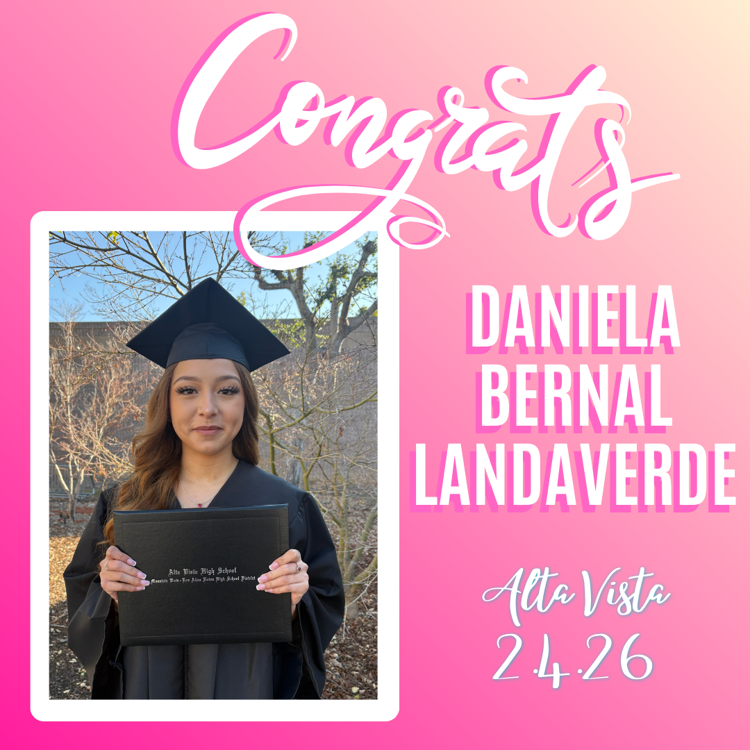 Congratulations, Sofia, and family! We are very proud of your accomplishments at Alta Vista High School!