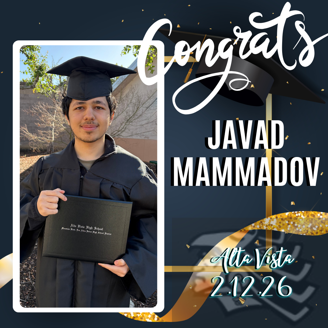 Congratulations to Javad, who graduated on February 12, 2026! Javad has worked diligently, and enjoyed a reduced schedule as a result, throughout his senior year. We are so proud of you, Javad!
