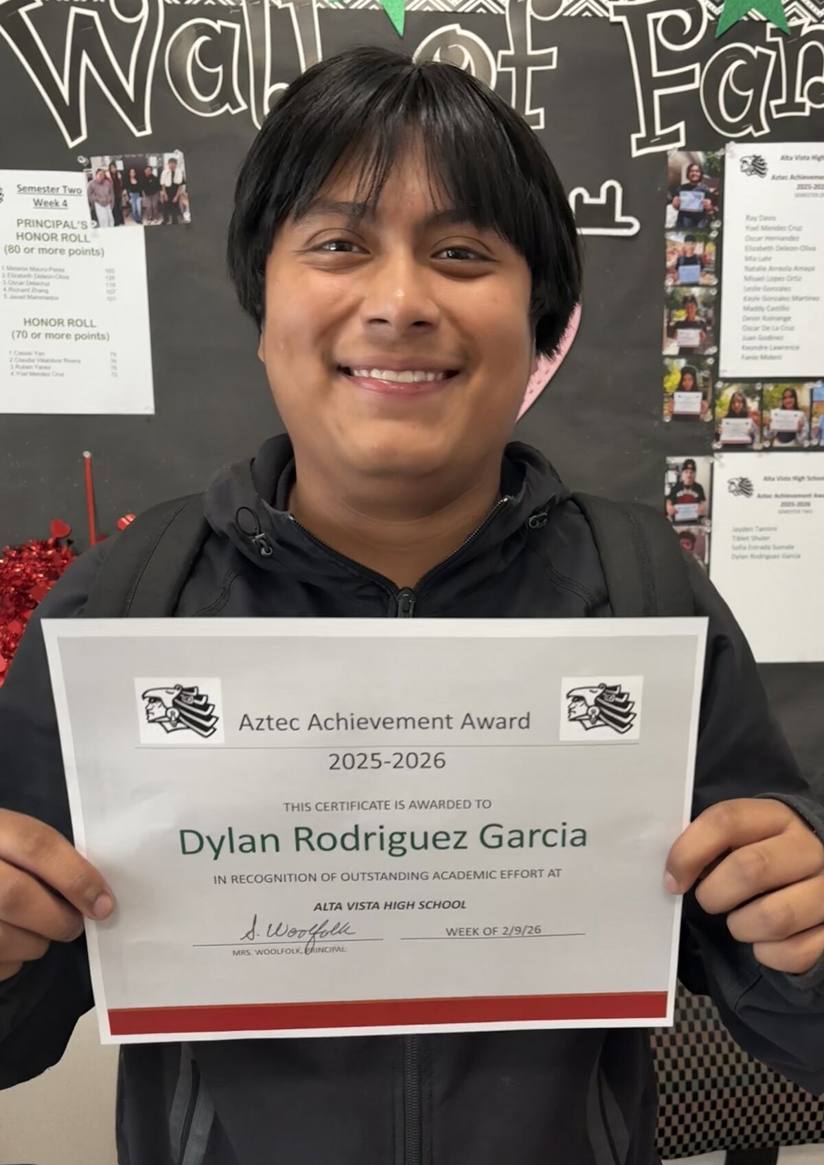In the words of our Alta Vista teachers, Dylan has been awarded the Aztec Achievement Award for the following outstanding values and characteristics: