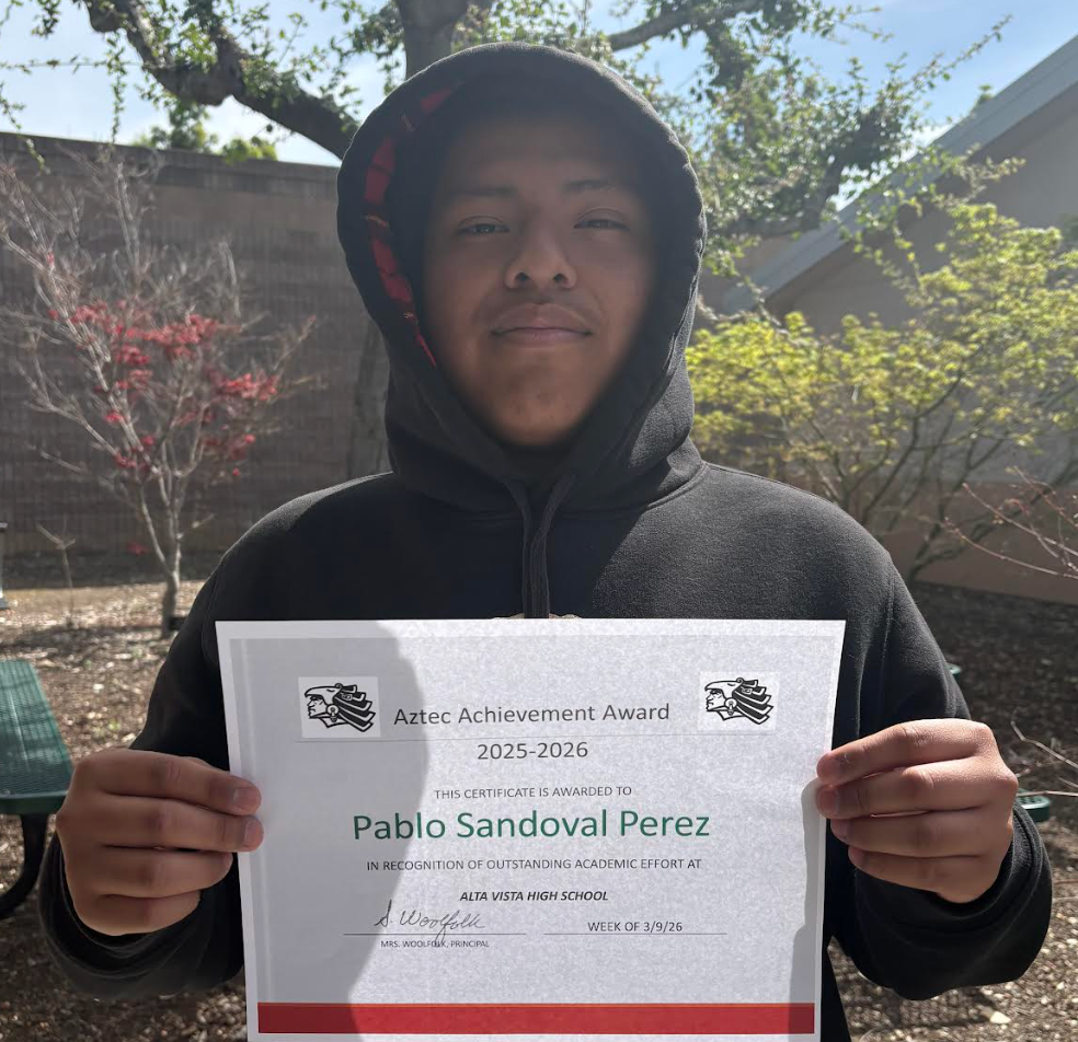 In the words of our Alta Vista teachers, Pablo has been awarded the Aztec Achievement Award for the following outstanding values and characteristics: