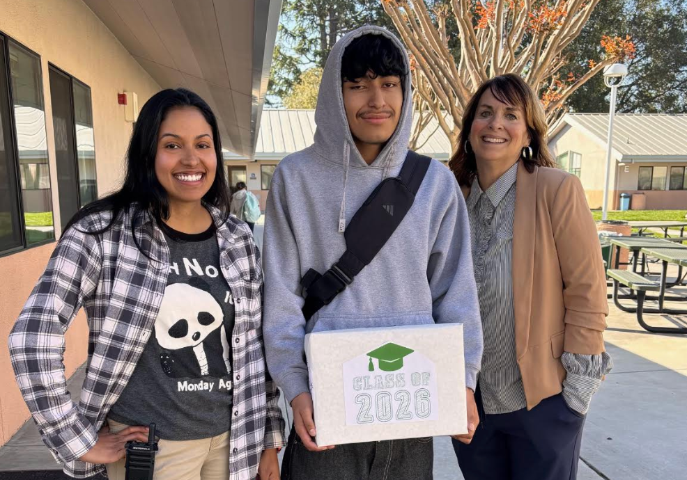 AVHS welcomed MVHS administrators, Dr. Glazer and Dr. Morelli, as well as Ms. Amaya Atayde, on campus this week. They surprised senior Oscar De La Cruz with a surprise gift and visit to show how proud they are of his hard work toward graduation!
