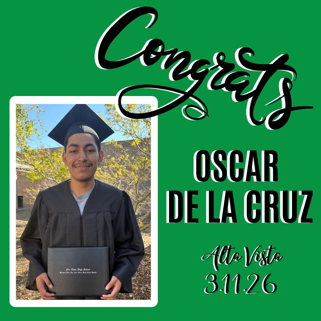 Congratulations, Pablo, and family! We are very proud of your accomplishments at Alta Vista High School!