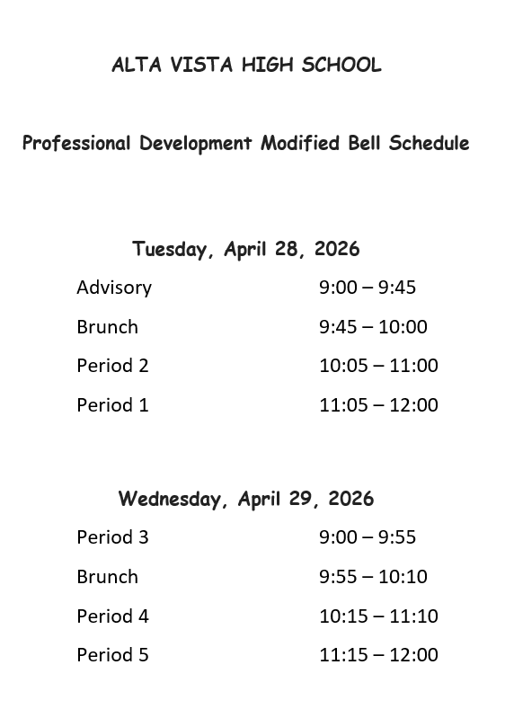 We have special schedules this coming Tuesday and Wednesday (early release); lunch will be available prior to leaving each of these days. Monday, Thursday and Friday are regular schedules. Enjoy the weekend, but also remember you have time for Health online or another course assignment. We have only (5) weeks left to graduate!