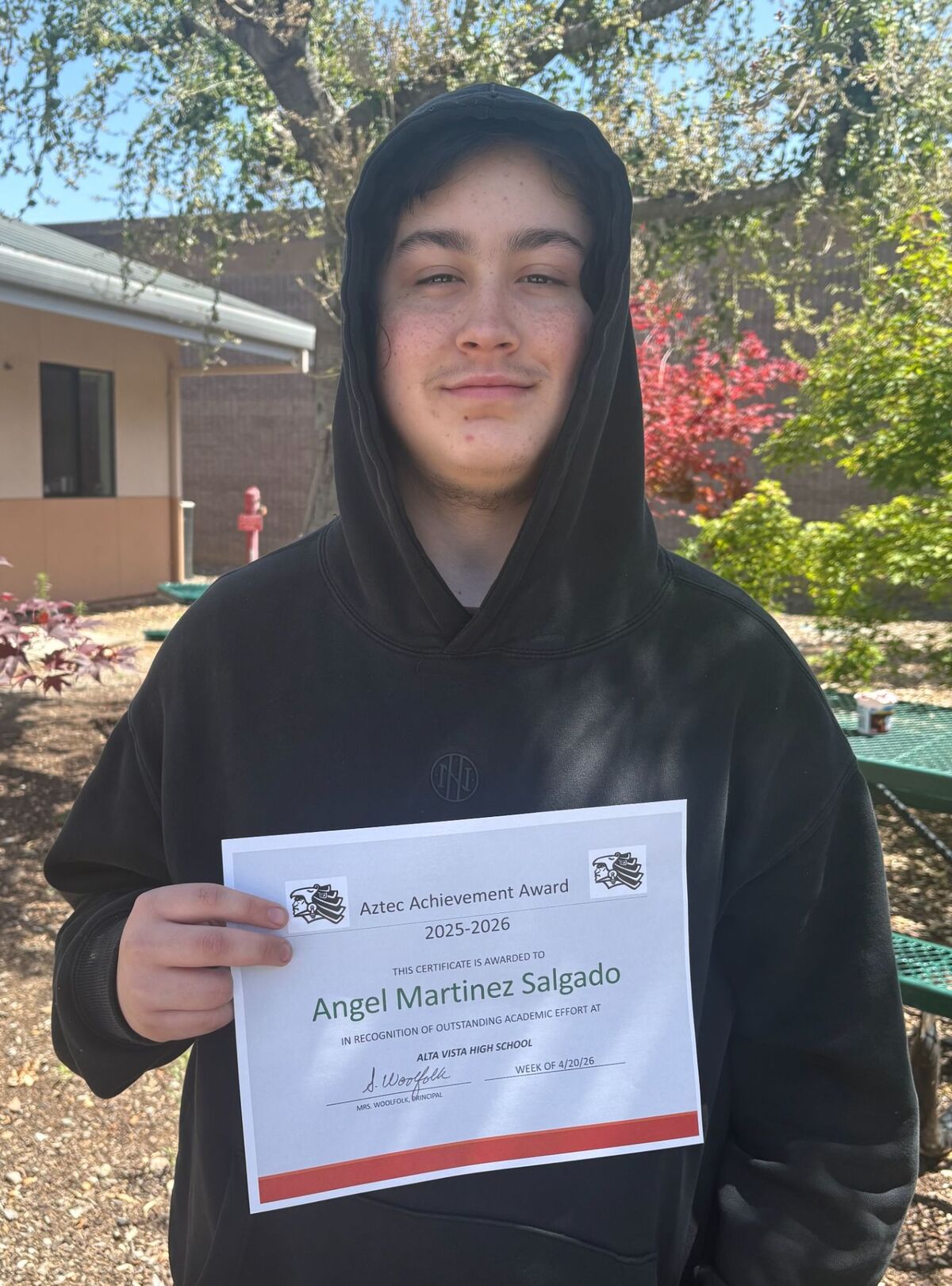 In the words of our Alta Vista teachers, Angel has been awarded the Aztec Achievement Award for the following outstanding values and characteristics: