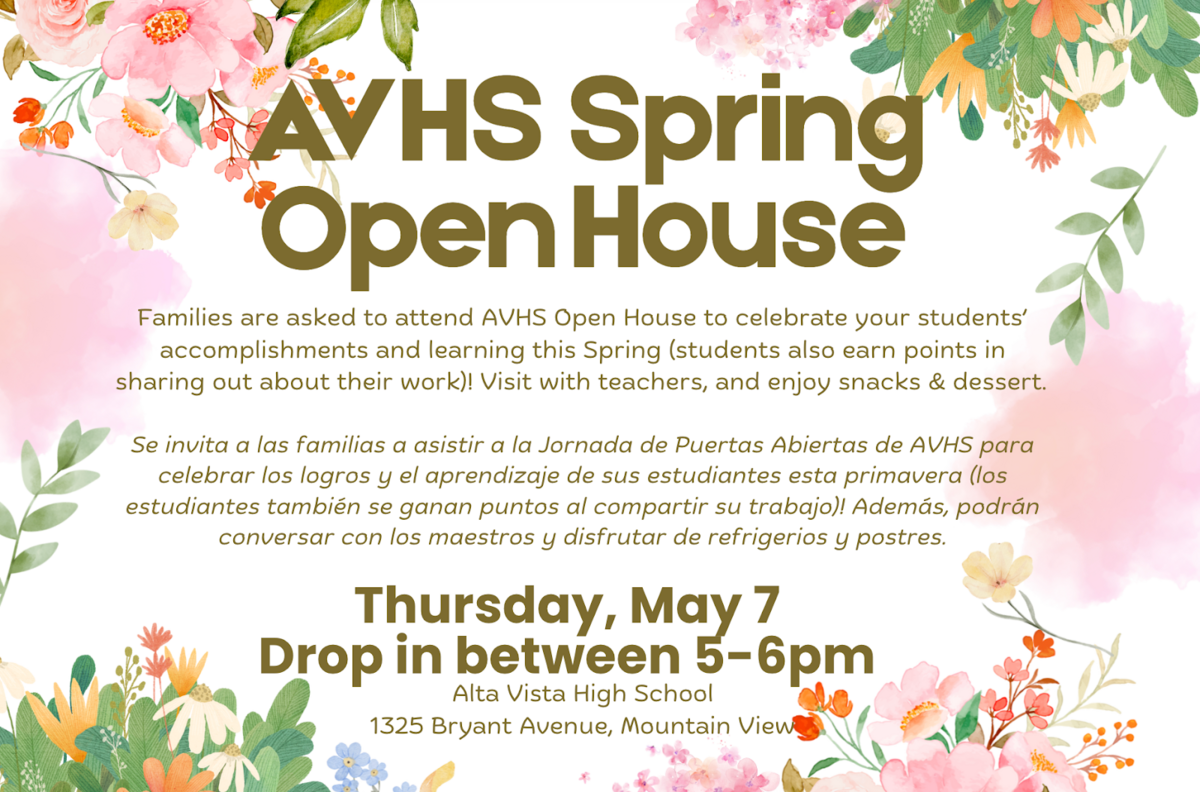 Please mark your calendars! The Alta Vista Spring Open House is coming Thursday, May 7 (drop in anytime between 5pm & 6pm):