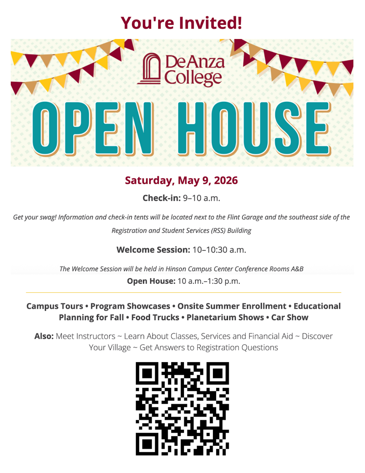 More info here: https://www.deanza.edu/open-house/index.html